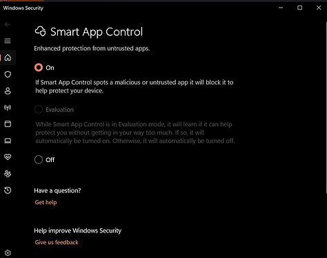 Microsoft designed Smart App Control so that if you turn it off, it cannot be turned back on unless you completely reinstall Windows from scratch.