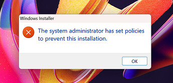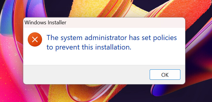 “The system administrator has set policies to prevent this installation.”